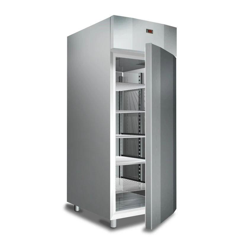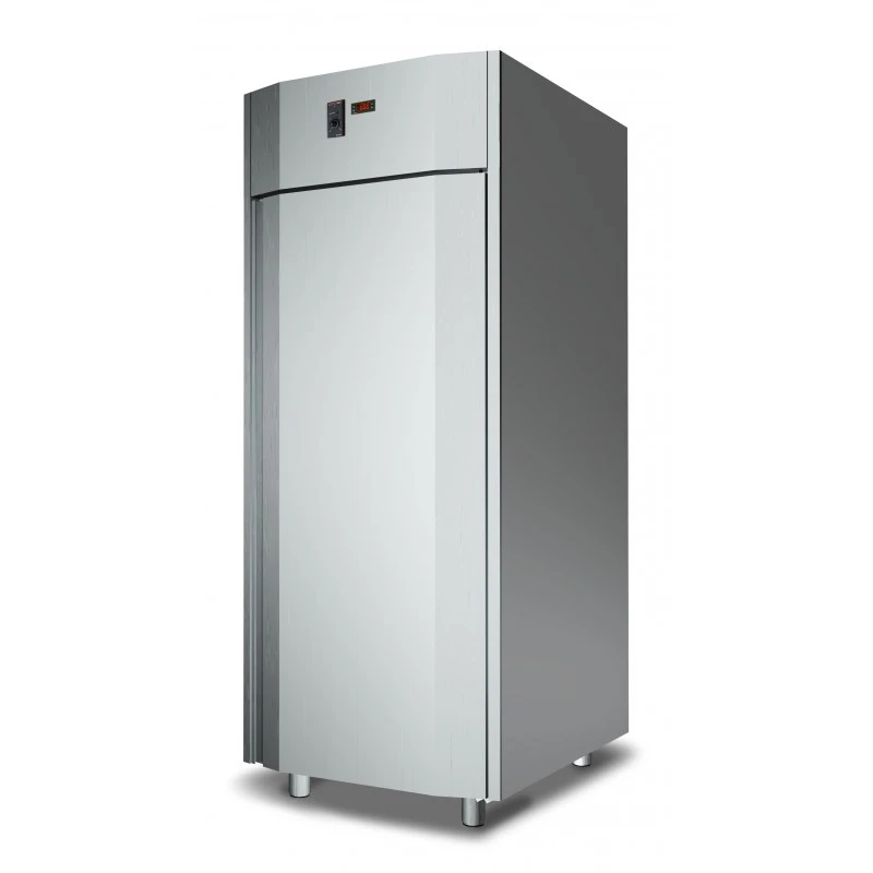 Interno ed esterno in acciaio inox eccetto fondo, soffitto e schienale esterni in acciaio galvanizzato. Angoli interni arrotondati. Isolamento in poliuretano senza CFC, iniettato ad alta pressione. Spessore dell’isolamento: 60 mm. Porte a chiusura automatica con guarnizione magnetica. Pannello di controllo elettronico frontale con sonda NTC. Unità refrigerante a monoblocco estraibile e tropicalizzata di serie (temperatura ambiente +30°C ed umidità relativa del 60%) funzionante con gas R404A/R507. Armadi disponibili anche nella versione senza unità refrigerante. Sbrinamento ed evaporazione dell’acqua di condensa completamente automatici. Piedi in acciaio inox regolabili in altezza. Armadi combinati disponibili esclusivamente con evaporatore all’interno della camera refrigerata. Design compatto.