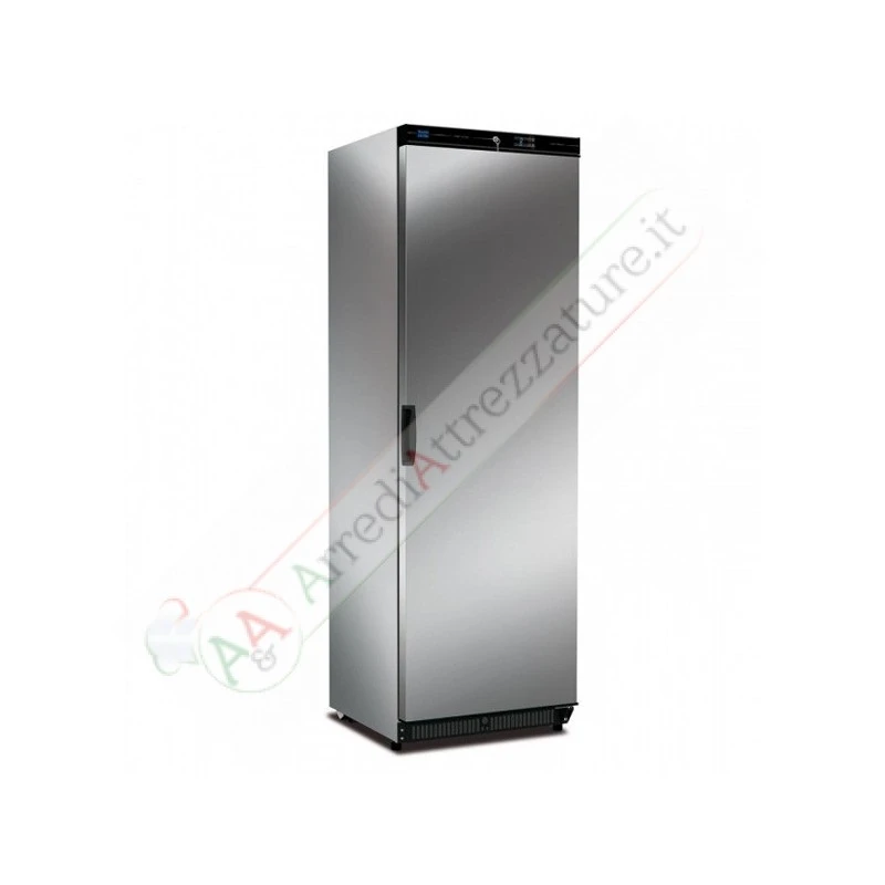 Armadio refrigerato in lamiera d’acciaio bianca trattata anti-corrosione con evaporatore ventilato a roll bond. Temperatura di esercizio: -2°C /+10°C. Capacità di 600 litri