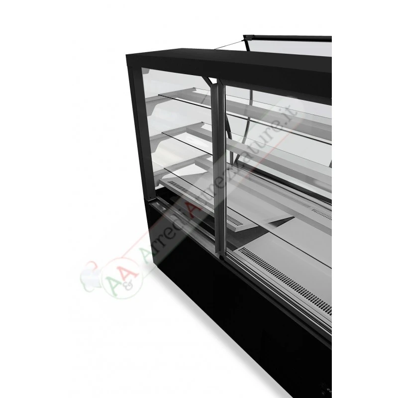 Vetrina pasticceria a refrigerazione ventilata con 3 mensole. Grazie ai suoi soli 78 cm di profondità permette di essere collocata facilmente negli ambienti stretti