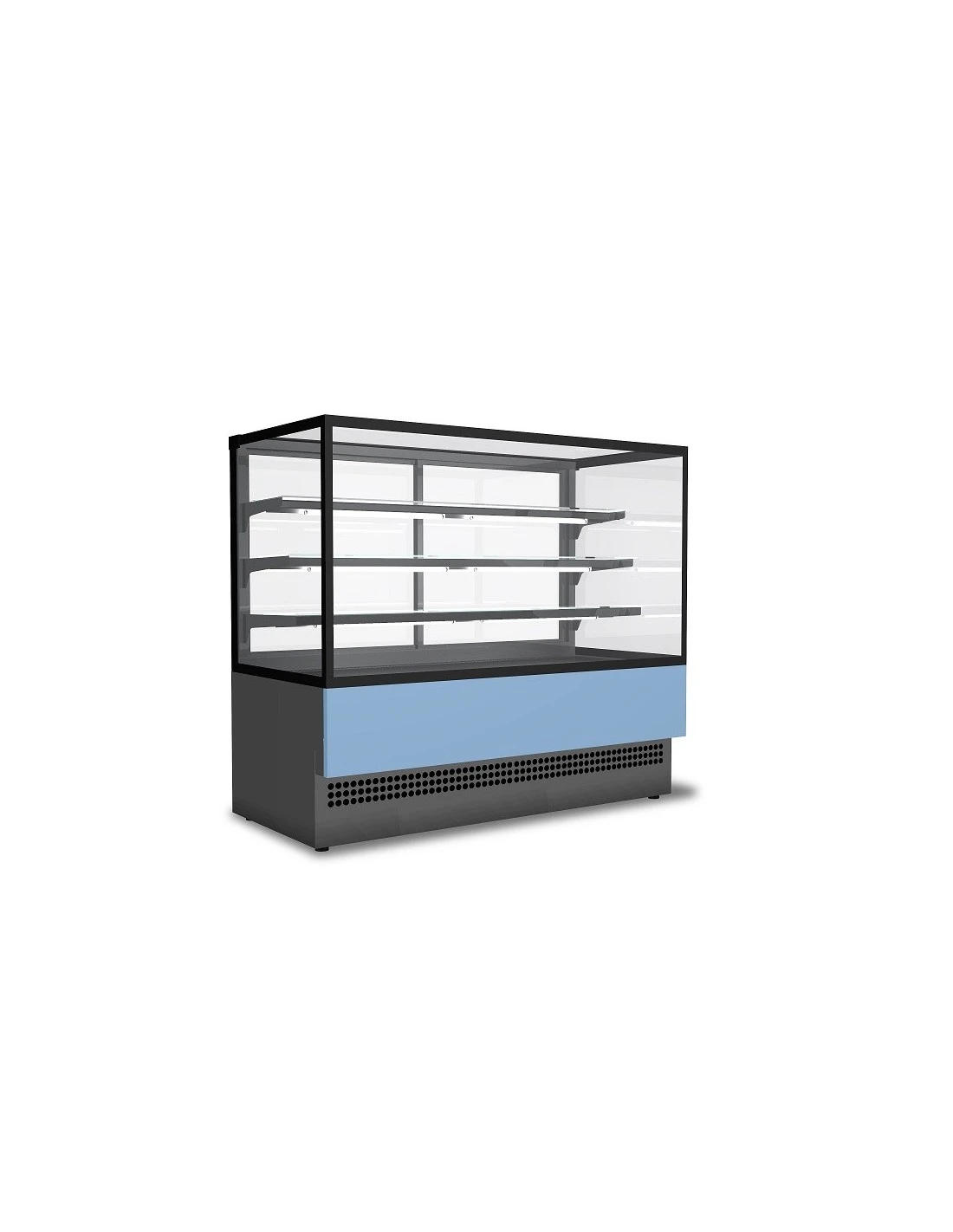 Vetrina neutra con una larghezza espositiva di 1500 mm dotata di vetrocamere panoramiche piani su 5 lati, luci LED su richiesta e massima affidabilità. Le porte scorrevoli in vetrocamera, presenti nella parte posteriore, garantiscono la massima operabilità, il minimo ingombro e riducono lo spostamento d’aria all’ apertura della porta.