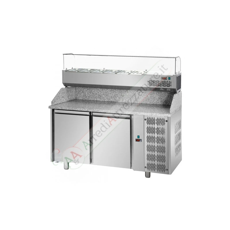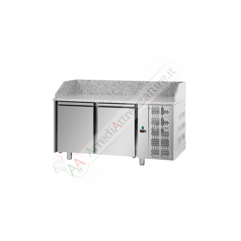Interno ed esterno in Acciaio Inossidabile, con esclusione del fondo esterno in Acciaio Galvanizzato. Angoli interni arrotondati. Isolamento in poliuretano senza CFC, iniettato ad alta pressione. Spessore dell’isolamento: 40 mm. Porte con chiusura automatica e guarnizione magnetica. Temperatura solo positiva. Pannello di controllo elettronico frontale con sonda NTC. Refrigerazione ventilata. Unità refrigerante a monoblocco estraibile e tropicalizzata di serie (temperatura ambiente +30°C ed umidità relativa del 60%) funzionante con gas R404A/R507. Tavoli disponibili anche nella versione senza unità refrigerante. Sbrinamento ed evaporazione dell’acqua di condensa completamente automatici. Piedi in Acciaio Inossidabile regolabili in altezza. Varie personalizzazioni disponibili a catalogo.