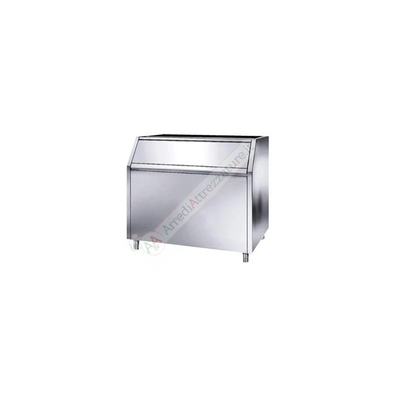Contenitori disponibili nella versione con carrozzeria in acciaio inox con vasca interna in polietilene e nella versione interamente in polietilene. Alcune versioni sono disponibili con carrello estraibile per consentire un facile trasporto del ghiaccio alla postazione di utilizzo.