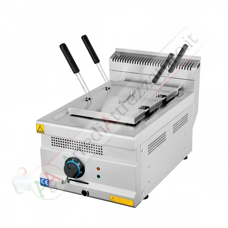 Cuocipasta da banco per cucine professionali con alimentazione elettrica. La struttura del bollitore è in acciaio inox ed è dotato di una vasca monoblocco da con una capacità di 8 litri. La sua progettazione e suoi materiali permettono una veloce pulizia e una resistenza nel tempo. La temperatura dell’acqua può essere regolata tra 30° e 120° C attraverso il termostato. Scopri la nostra offerta sul bollipasta professionale.