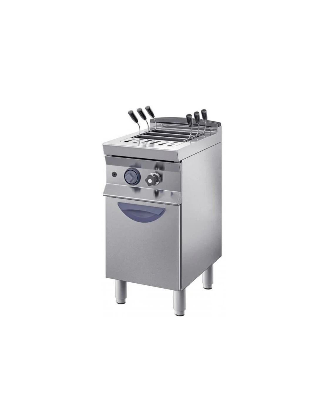 Cuocipasta professionale con alimentazione a gas armadiato. Questo cuoci pasta ha una profondità cm 90 e una capacità della vasca 40 litri.