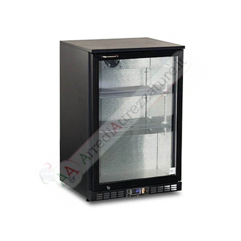 Vetrina refrigerata con 1 sportello con una capacità di 112 litri ottima per l’esposizione delle bibite.