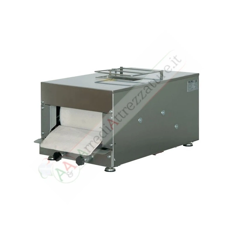 L’allungamento dei panini è regolabile con apposito volantino. I panini escono filonati e ben lisci esternamente. Può lavorare paste molli sino al 70% di acqua, e paste grasse. Completa di impianto elettrico in bassa tensione, dispositivi antinfortunistici, e realizzata completamente in acciaio inox