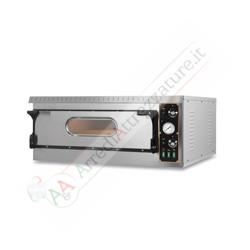 Il forno elettrico ideale per pizzeria e rosticceria. Questi forni hanno come concetto la massimizzazione del lavoro e sono stati progettati per garantire un ottimo risultato con un facile utilizzo caratterizzato da un ottimo rapporto qualità/prezzo. Su questi forni vengono utilizzati materiali speciali ad alto potere isolante, determinando una ottima efficenza termica e di conseguenza bassi consumi. Il frontale e lo sportello sono realizzati in acciaio inox mentre la pannellatura posteriore viene realizzata in lamiera preverniciata. La camera di cottura di ampie dimensioni è dotata di illuminazione interna tramite luce alogena per garantire un ottima illuminazione. Le resistenze sono corazzate e il piano di cottura è realizzato in mattoni refrattari o in lamiera bugnata ideale per cottura in teglie. Alimentazione: Volt 230 – Volt 400 Trifase + neutro