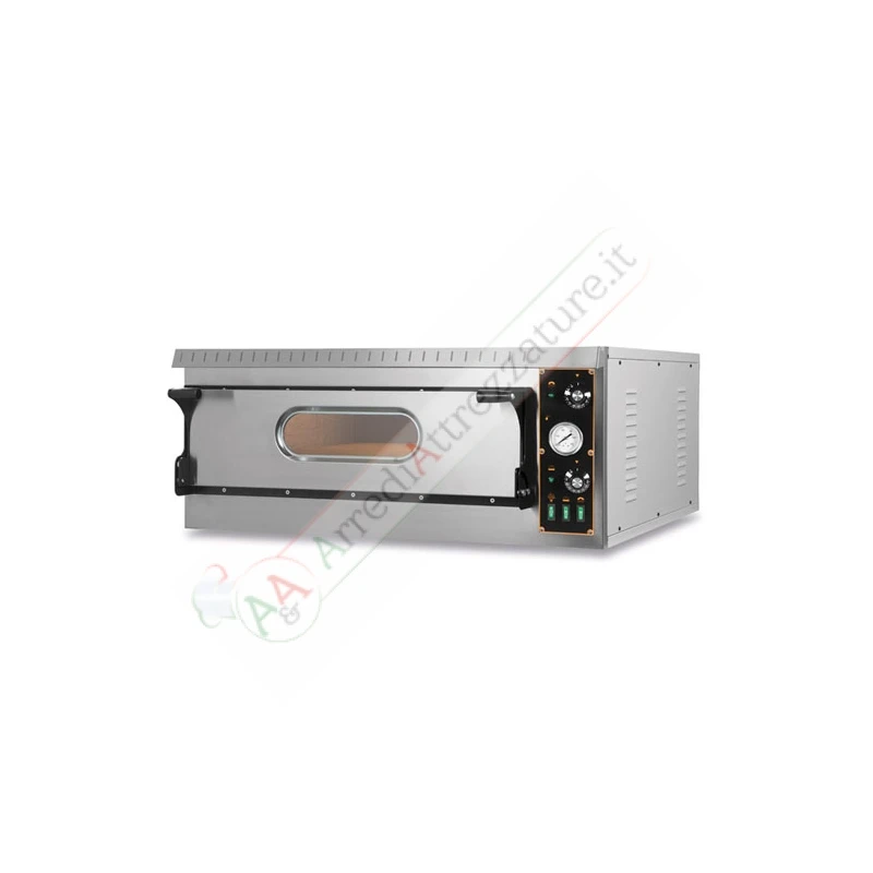 Il forno elettrico ideale per pizzeria e rosticceria. Questi forni hanno come concetto la massimizzazione del lavoro e sono stati progettati per garantire un ottimo risultato con un facile utilizzo caratterizzato da un ottimo rapporto qualità/prezzo. Su questi forni vengono utilizzati materiali speciali ad alto potere isolante, determinando una ottima efficenza termica e di conseguenza bassi consumi. Il frontale e lo sportello sono realizzati in acciaio inox mentre la pannellatura posteriore viene realizzata in lamiera preverniciata. La camera di cottura di ampie dimensioni è dotata di illuminazione interna tramite luce alogena per garantire un ottima illuminazione. Le resistenze sono corazzate e il piano di cottura è realizzato in mattoni refrattari o in lamiera bugnata ideale per cottura in teglie. Alimentazione: Volt 230 – Volt 400 Trifase + neutro