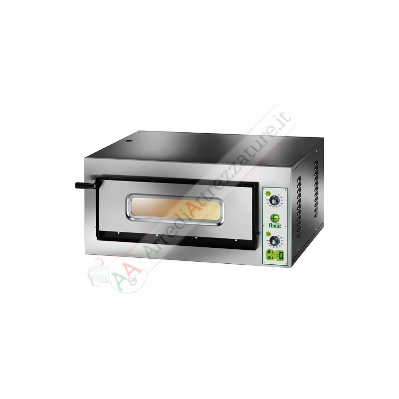Forni elettrici professionali per la cottura di pizza, focacce, ecc – rivestimento frontale inox o rustico, solo inox per modelli FYL – piano di cottura refrattario – isolamento termico mediante rivestimento in lana di roccia – porte con vetro di ispezione in pirex – pirometri solo per modelli FML – illuminazione interna – 2 termostati per ogni camera.