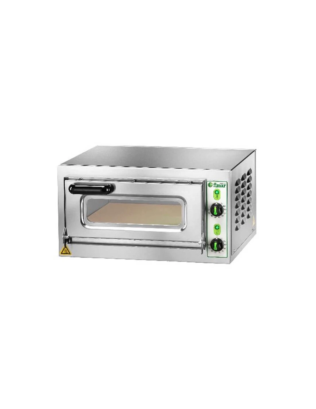 Forno elettrico professionale per la cottura di pizza, focacce, ecc. Rivestimento frontale inox – piano di cottura refrattario – isolamento termico mediante rivestimento in lana di roccia – 3 termostati per modello MINI – 2 termostati per modello MICROV 1C – 4 termostati per modello MICROV 2C. Porte con vetro di ispezione in pirex (a richiesta con porta cieca). A richiesta per modello MICROV 1C: altezza camera 18 o 22 cm. Il modello con camera da 22 cm è dotato di luce e pirometro.