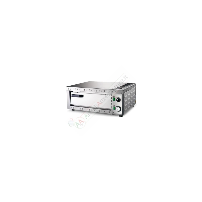 Forno elettrico professionale per 2 pizze con piano di cottura in pietra refrattaria.