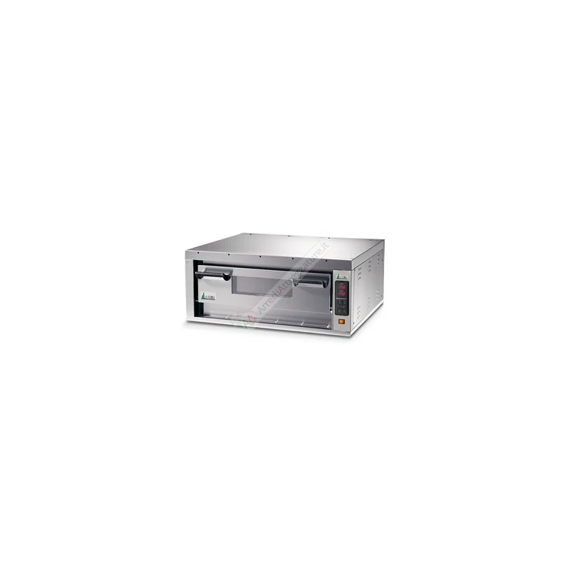 Forno per pizze con piano di cottura in pietra refrattaria.