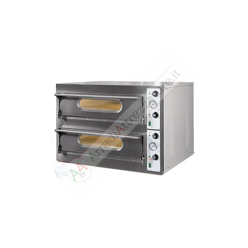 Il forno elettrico ideale per pizzeria e rosticceria. Il forno è un forno semplice e integrato per ottenere il massimo delle prestazioni con un ottimo prezzo. E’ costruito in acciaio inox e in lamiera preverniciata. Piano di cottura in pietra refrattaria. Isolamento in lana di roccia evaporata. Resistenze corazzate. Illuminazione interna. Alimentazione: Volt 230 – Volt 400 Trifase + neutro