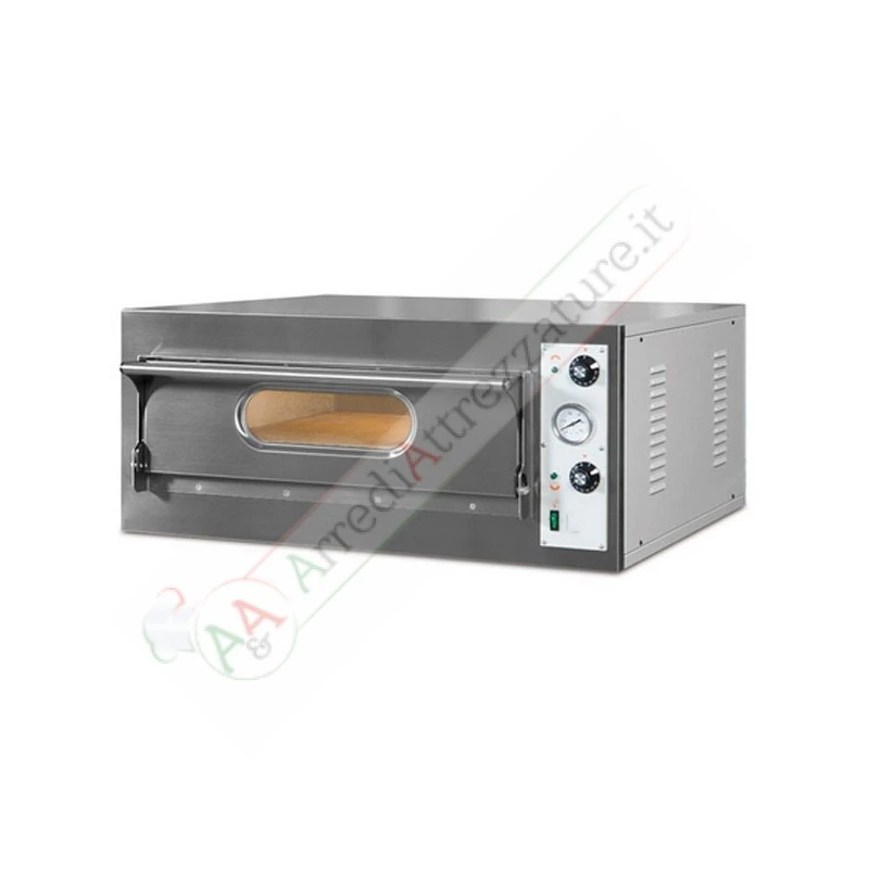 Questo è un forno elettrico semplice e integrato per ottenere il massimo delle prestazioni con un ottimo prezzo. E’ costruito in acciaio inox e in lamiera preverniciata. Piano di cottura in pietra refrattaria con una capacità di 6 pizze. Isolamento in lana di roccia evaporata. Resistenze corazzate. Illuminazione interna. Alimentazione: Volt 230 – Volt 400 Trifase + neutro e 1 camera di cottura.