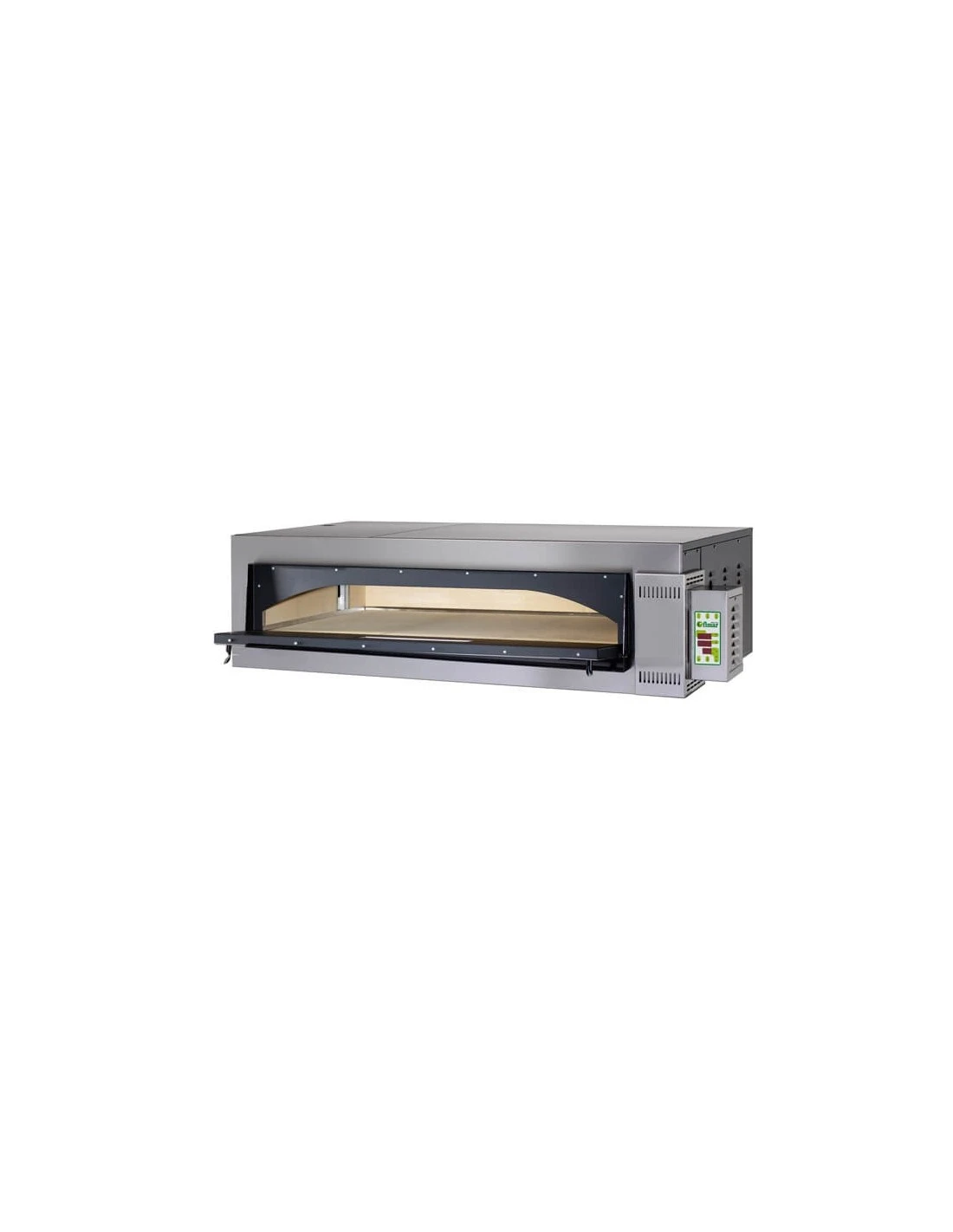 Forni elettrici professionali per la cottura di pizza, focacce, ecc. Rivestimento frontale inox – camera di cottura interamente refrattaria – pannello comandi digitale – isolamento termico mediante rivestimento in lana di roccia – porte con vetro di ispezione in pirex – pirometri – illuminazione interna.