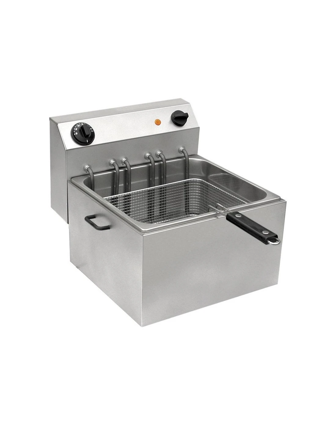Corpo in acciaio inox con maniglie e coperchio, uno o due vasche estraibili in acciaio inox per una migliore igiene, testata estraibile, micro interruttore di sicurezza termostato di sicurezza e termostato di regolazione temperatura, interruttore ON/OFF.