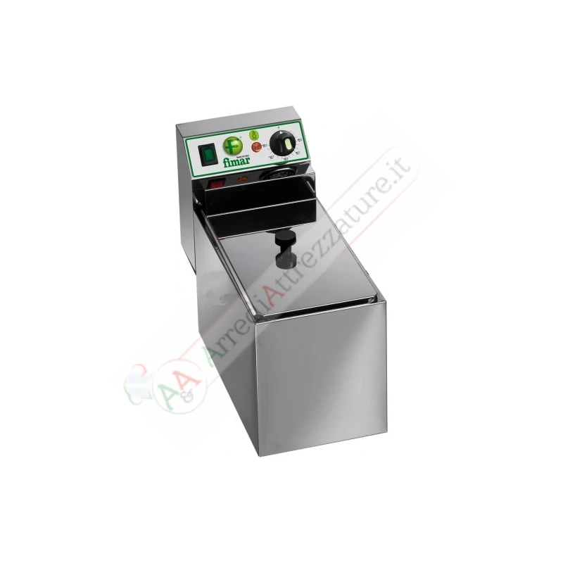 Struttura, vasca e coperchio in acciaio inox – cestelli a rete estraibili in filo cromato – manici cestelli e pomelli coperchi in plastica termoisolante – resistenze inox – termostato 50÷190 ° C – termostato di sicurezza con pulsante di ripristino – versioni a due vasche con doppio termostato per utilizzo indipendente – testata e resistenze removibili.