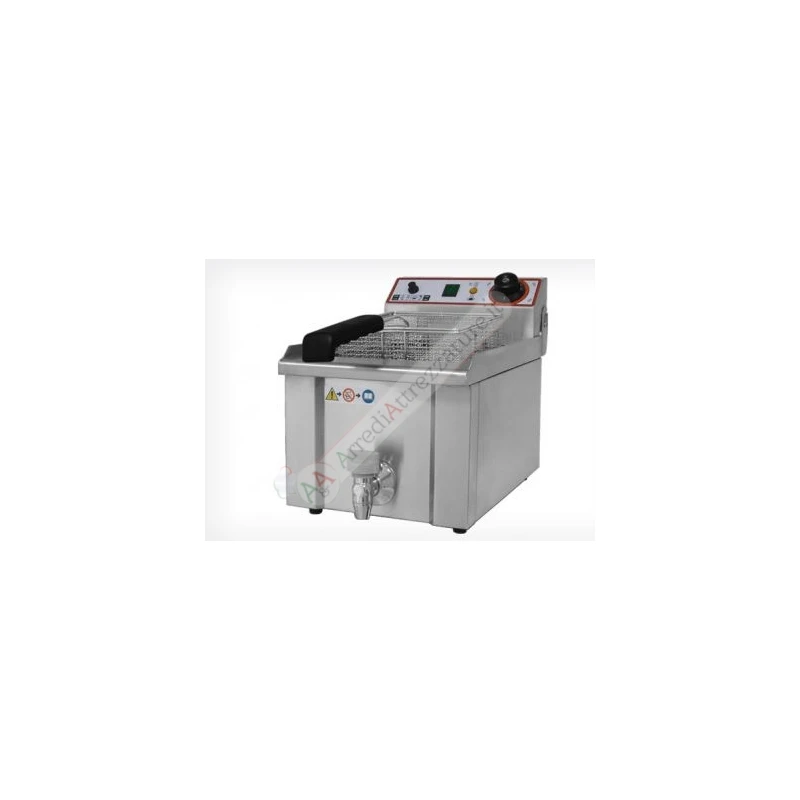 CARATTERISTICHE GENERALI Struttura e vasche in acciaio inox – Termostato di sicurezza ( 240°C)-Temperatura 50°C ~ 190°C-Capacità olio: 9 Lt – Rubinetto per scarico olio