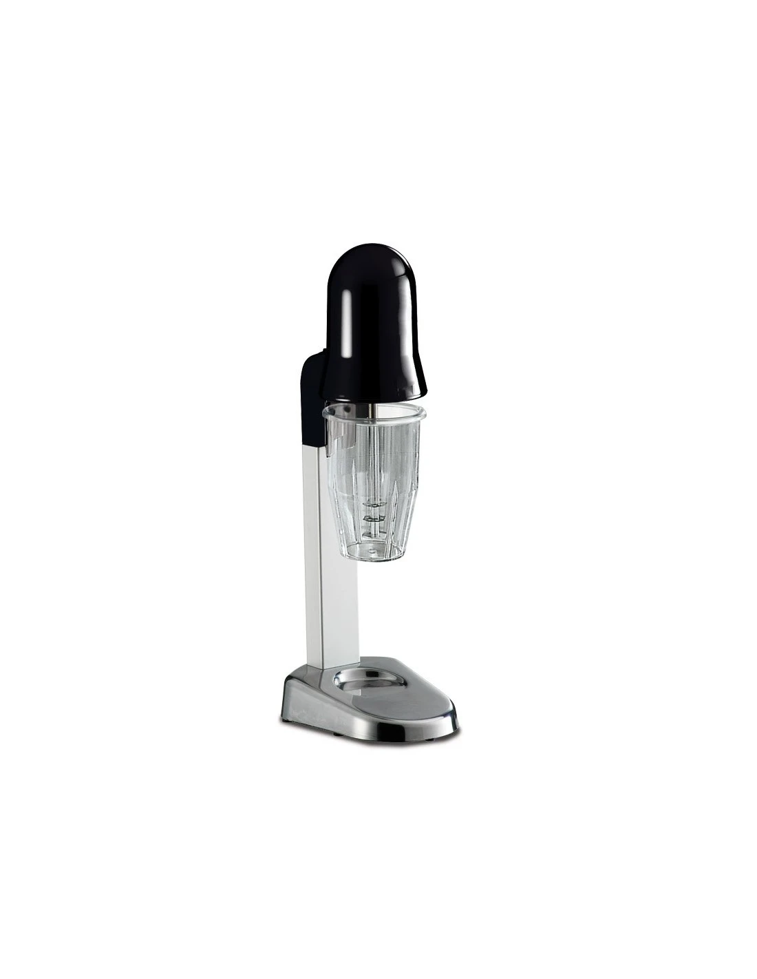 Frullino per frappè 1 bicchiere. Grazie al suo agitatore a 3 dischi, si ottengono frappè cremosi e soffici, sia con prodotti in polvere sia con gelato specialmente alla banana, fragola, pesca e kiwi. Per gelaterie, bar, ristoranti e altre attività.