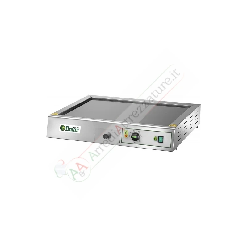 Macchina elettrica per cottura a secco o ad olio. Struttura in acciaio inox con piano di cottura in vetroceramica modello FRY2VCE – termostati di regolazione temperatura 50÷300 °C – cassetto raccolta residui di cottura.