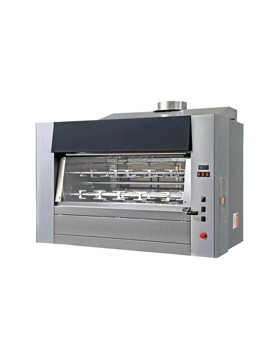 Il girarrosto planetario a legna con capacità di 108 polli è un attrezzo ideale per la cottura di grandi quantità di carne in modo uniforme e gustoso. La sua struttura è costituita da 12 dischi planetari in acciaio inossidabile, compresi di 6 aste da 91 cm per la grigliatura dei polli. Il sistema doppi motori grill plus blocca i dischi e ruota le sole aste, permettendo la cottura di una o più aste, griglie o rulli vicino alla fiamma riducendo sensibilmente il tempo di cottura ed il consumo energetico.