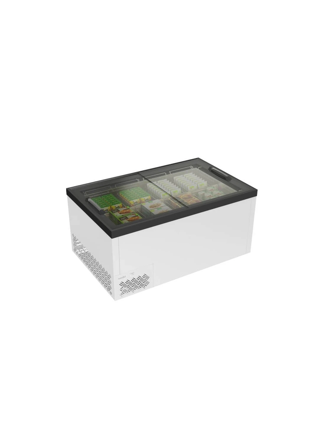 Isola surgelati negativa con vetri scorrevoli con un alta efficienza energetica grazie a 90 mm di isolamento di poliuretano iniettato SENZA HCFC/CFC. Questa isole vetrate negative vetro piano scorrevole ha una refrigerazione statica e una capacità di 551 litri. La sua temperatura di lavoro che va da -25°C a -18°C. Questa isola congelatore viene spesso usato nei supermarket e minimarket.