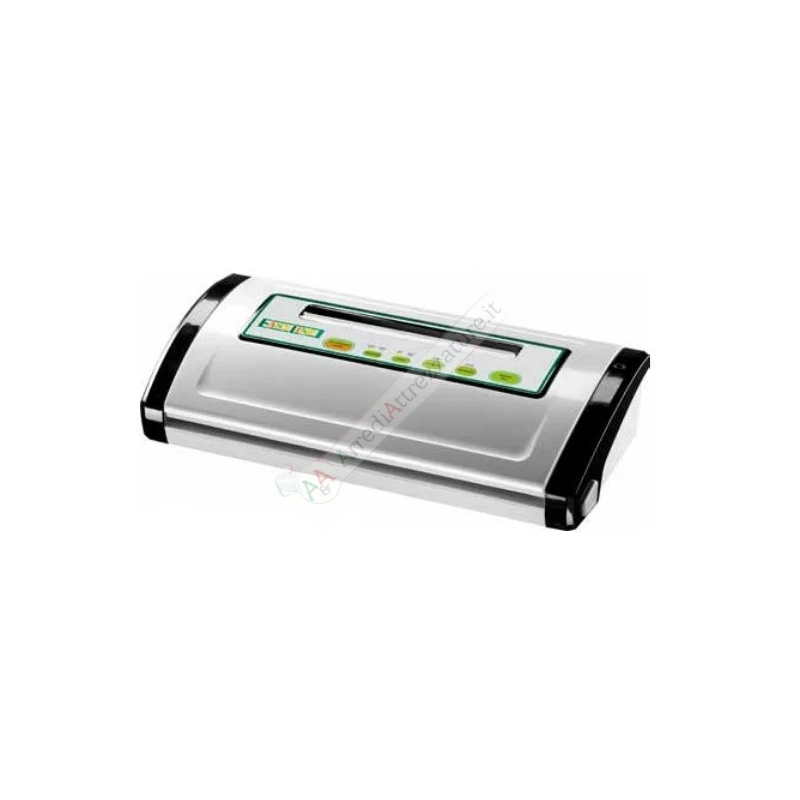 La Macchina per il sottovuoto consente di confezionare cibi (sia solidi che liquidi) in modo pratico e permettono di prolungare i tempi di conservazione, mantenendo intatte le caratteristice organologiche. Tramite l’utilizzo di apposite buste (SOLO Goffrate) o contenitori si ottiene un livello di vuoto tale da impedire le proliferazione batterica. Carcassa in abs.