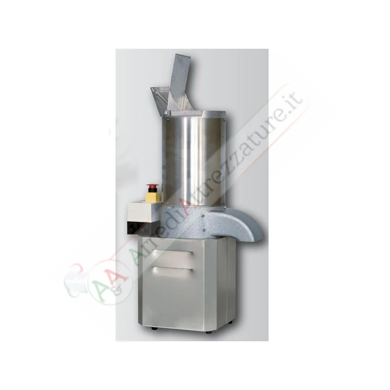 Macina con una ventolina per forza di gravità. Monta un motore da HP 1 a 2800 giri, ha l’impianto elettrico corredato di magnetotermico a norme CE, per salvaguardare il motore. E’ completo di dispositivo antinfortunistico. Produzione oraria: kg. 50.