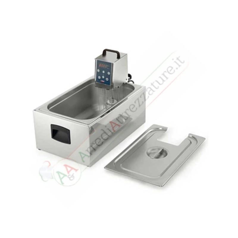 – Vasca gastronorm 1/1 H. 20 in acciaio inox AISI 304, capacità 21 litri.