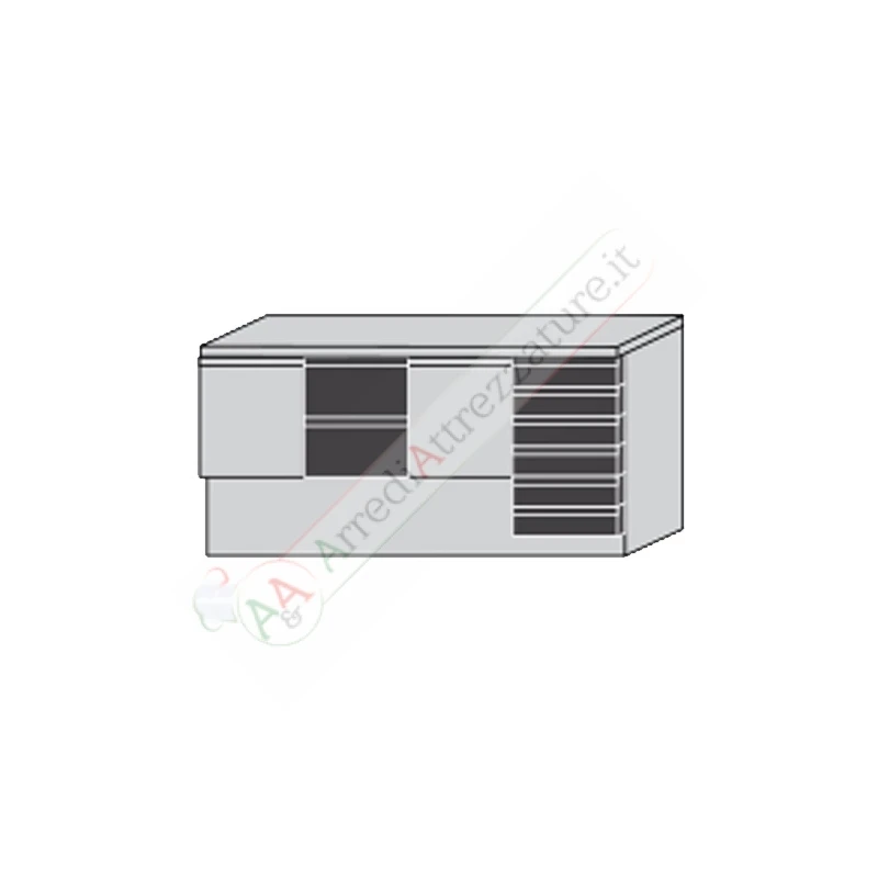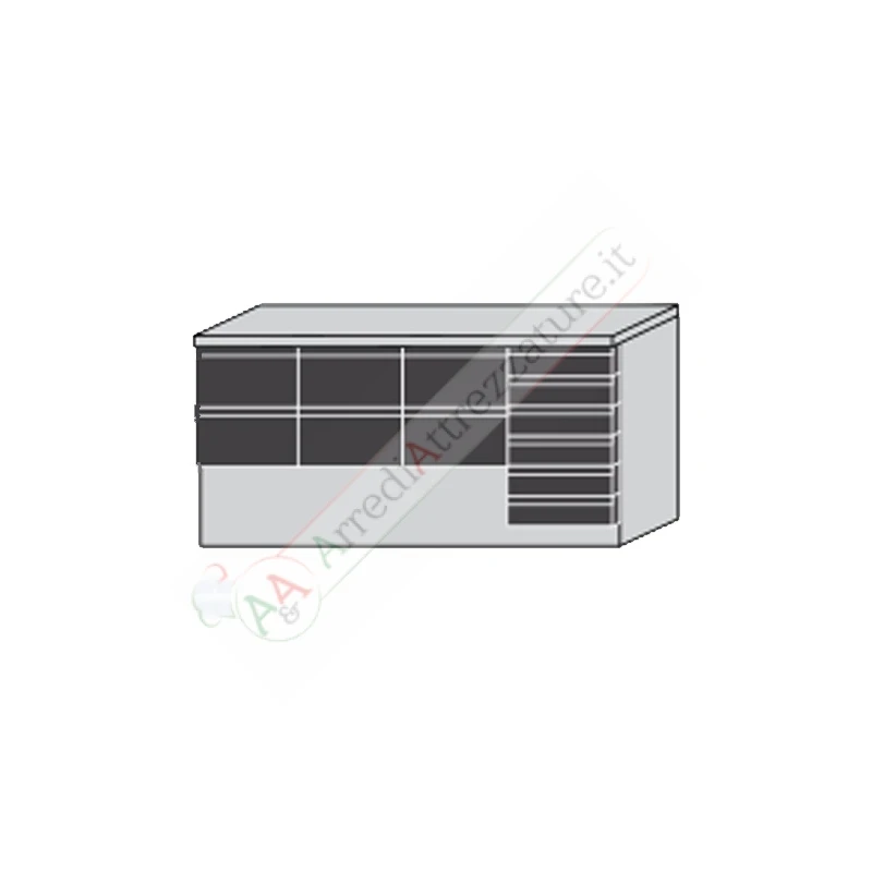 Saladette 3 porte, 6 cassetti e piano in granito e con Vetrina Refrigerata.