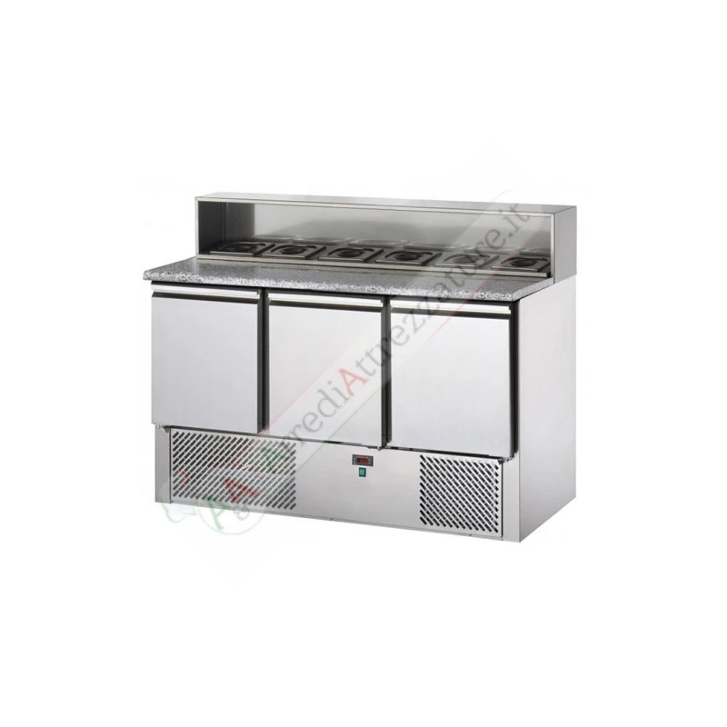 Saladette con piano in granito e alzata in Acciaio Inox, predisposta per 8 vaschette GN1/6.