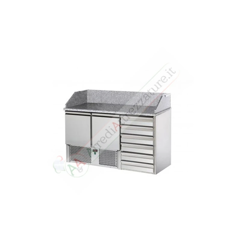 Saladette 2 porte, 6 cassetti e piano con alzata in granito.