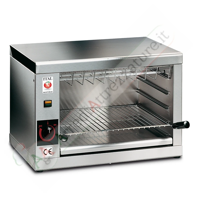 – Griglia di cottura e griglia di protezione resistenze, in acciaio cromato.