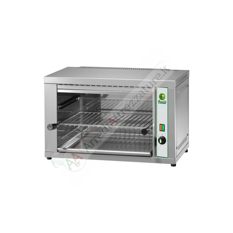 Struttura in acciaio inox – griglia cromata e cassetto raccolta residui di cottura removibili – termostati regolazione potenza – regolazione posizione griglia. Il modello SAL600MB ha la testa mobile.