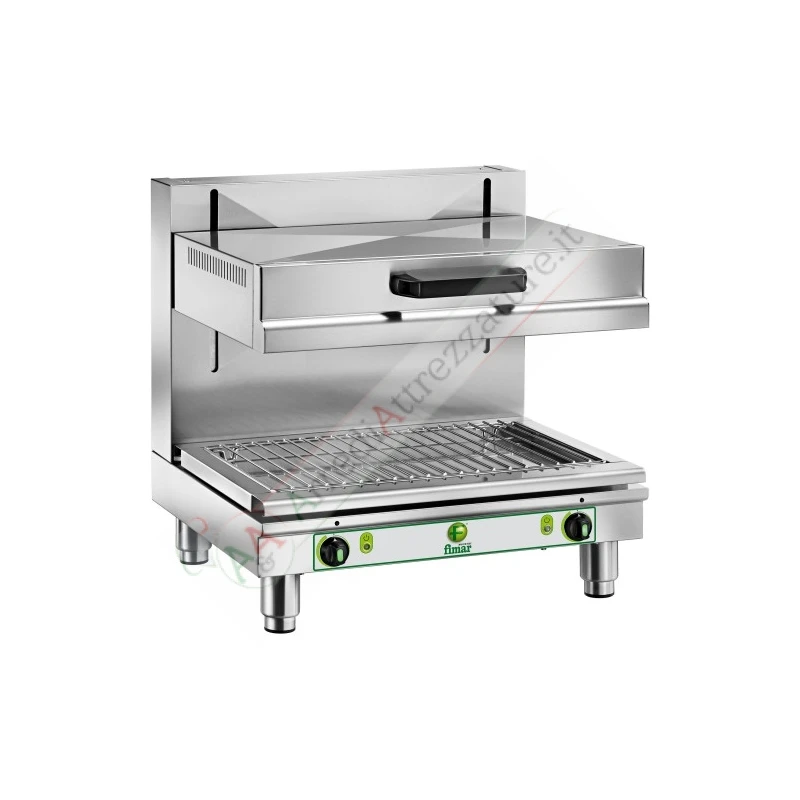 Il modello SAL600MB ha la testa mobile. Struttura in acciaio inox – griglia cromata e cassetto raccolta residui di cottura removibili – termostati regolazione potenza – regolazione posizione griglia.