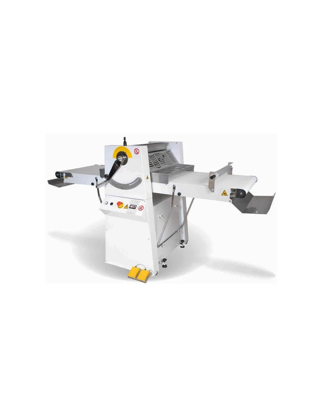 La macchina è dotata di un sistema di regolazione dello spessore che consente di ottenere sfoglie di diverse dimensioni e spessori. Ciò offre una grande flessibilità nel processo di produzione, consentendo di realizzare sfoglie sottili e croccanti o sfoglie più spesse e morbide, a seconda delle preferenze.
