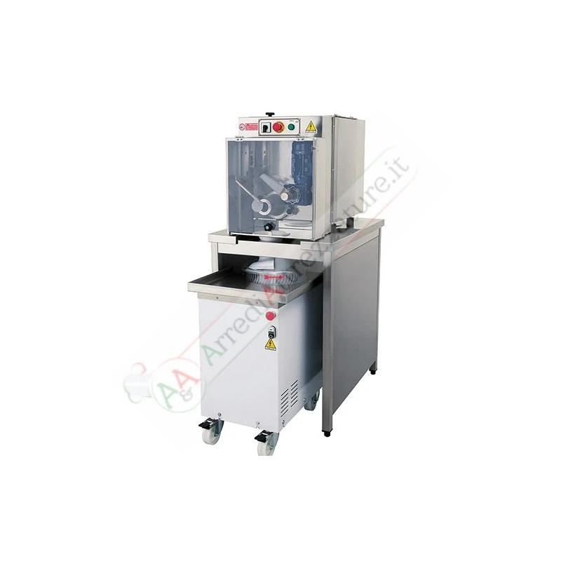 Supporto per unire spezzatrice ed arrotondatrice in acciaio inox, comodo per velocizzare la produzione di pane, riuscendo ad unire la velocità delle due macchina.
