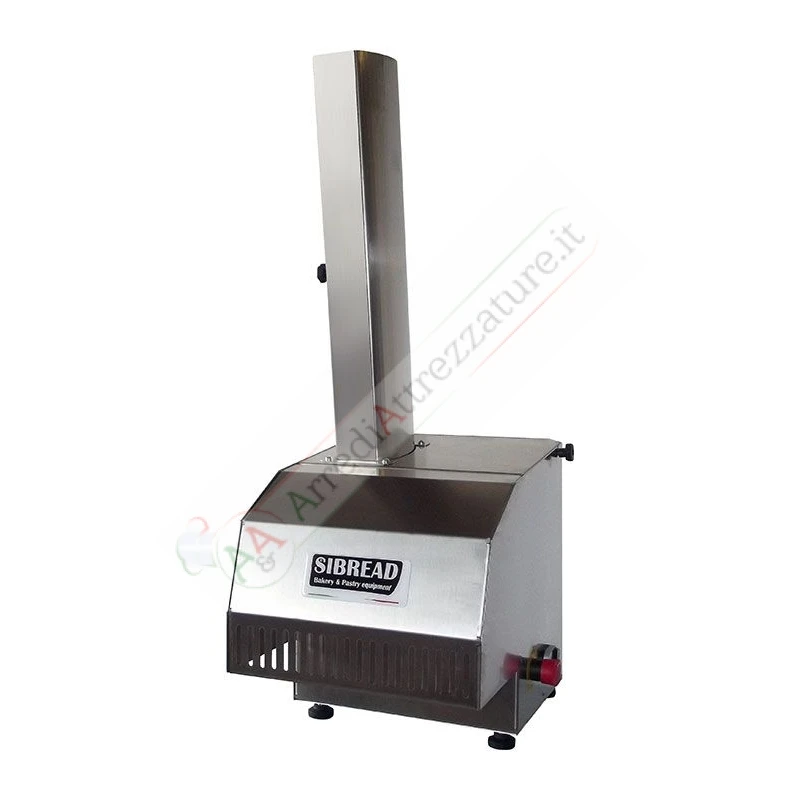 Taglia pane ideale per il taglio di baguettes e filoni. Struttura in acciaio inox, ideale per ristoranti e grandi collettività, taglia filoni di pane in fette di spessore regolabile, capacità di carico per uno o due filoni, rapidità di lavorazione, coltello di taglio estraibile. Sistema di sicurezza su scivolo di carico e griglia di protezione mani sulla bocca di uscita. Optional supporto in acciaio