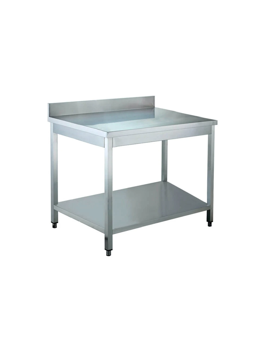 Tavolo da lavoro inox con ripiano e alzatina 600x600x950(h) mm.