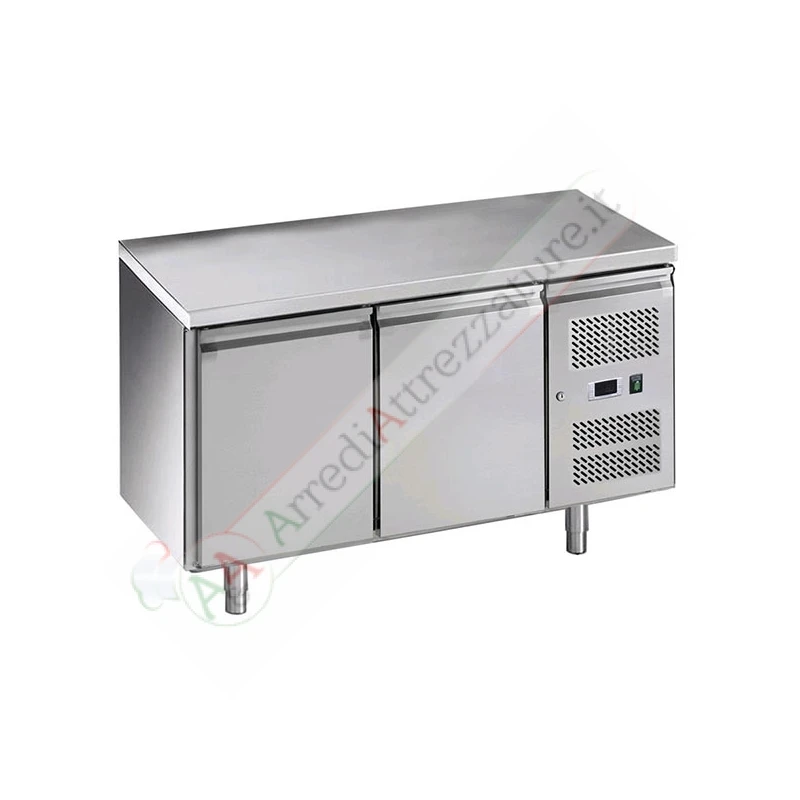 Struttura in acciaio inox. Refrigerazione ventilata. Gruppo incorporato estraibile per facile manutenzione. Pannello frontale apribile con chiave. Andamento circolare dell’aria fredda in modo da non toccare direttamente il prodotto. Controllo temperatura elettronico con termostato digitale. Resistenza elettrica intorno alla cornice porta per eliminazione della condensa. Sbrinamento automatico con resistenza elettrica e controllo automatico della temperatura di sbrinamento. Evaporazione automatica dell’acqua di condensa. Evaporatore trattato anticorrosione. Porta con molla di ritorno. Guarnizione porta estraibile senza utensili. Fondo con angoli arrotondati. Facile intercambiabilità porte con cassettiere da due e tre cassetti. Cassettiere con guide telescopiche in acciaio inox a totale estraibilità. Piedini in acc. Inox regolabili in altezza. Possibilità di appoggiare al muro.