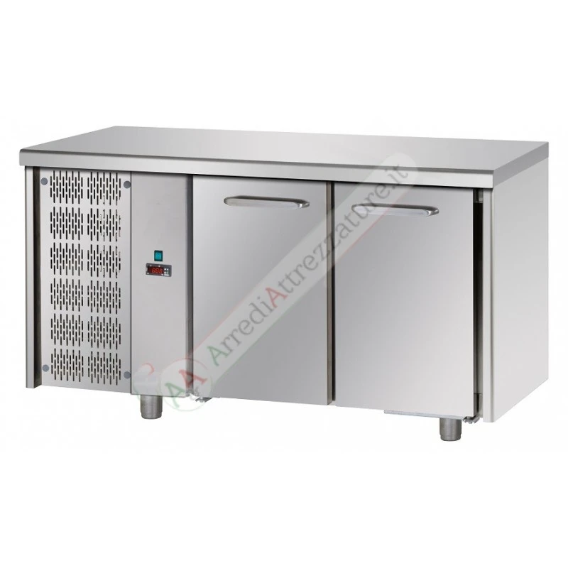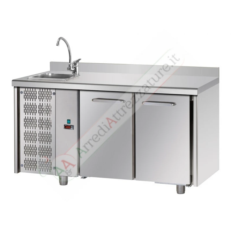 Tavolo refrigerato in acciaio inox 2 porte GN 1/1 in acciaio inox con gruppo SX.