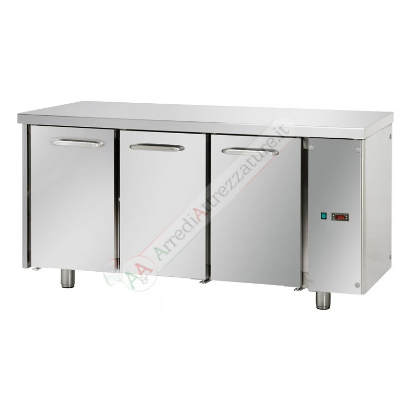 Tavolo refrigerato in acciaio inox 3 porte GN 1/1 predisposto per unità frigorifera remota.