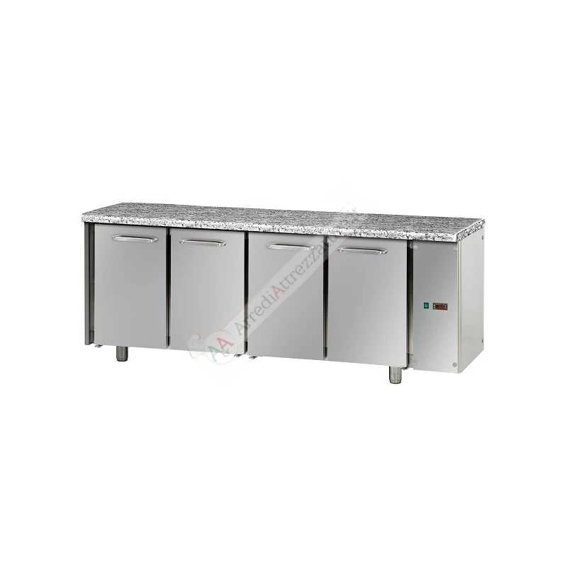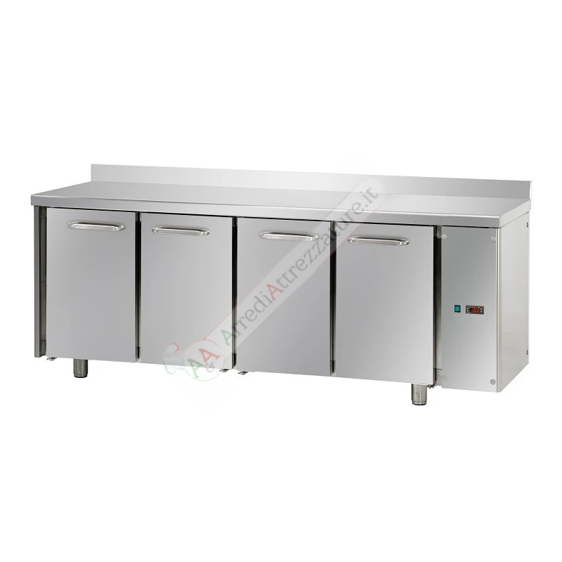 Tavolo refrigerato in acciaio inox 4 porte GN 1/1 predisposto per unità frigorifera remota.