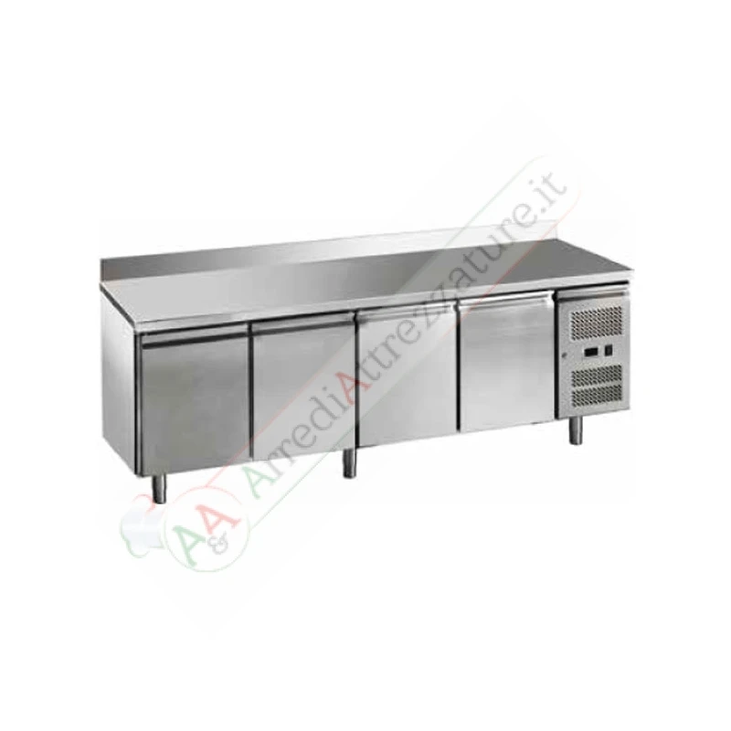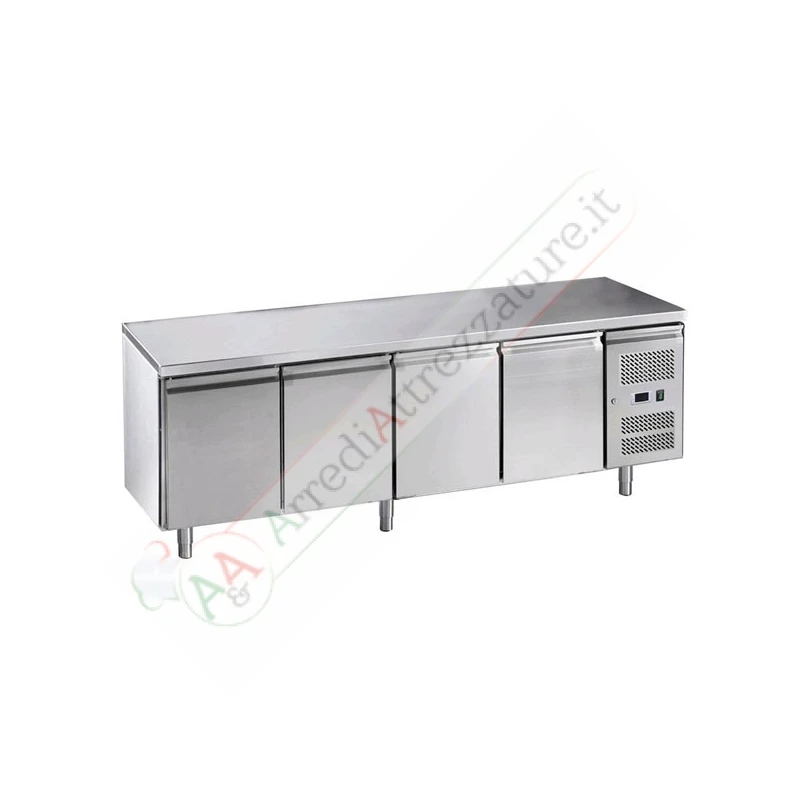 Sbrinamento automatico con resistenza elettrica e controllo automatico della temperatura di sbrinamento. Evaporazione automatica dell’acqua di condensa. Evaporatore trattato anticorrosione. Porta con molla di ritorno. Guarnizione porta estraibile senza utensili. Fondo con angoli arrotondati. Facile intercambiabilità porte con cassettiere da due e tre cassetti. Cassettiere con guide telescopiche in acciaio inox a totale estraibilità. Piedini in acc. Inox regolabili in altezza. Possibilità di appoggiare al muro.