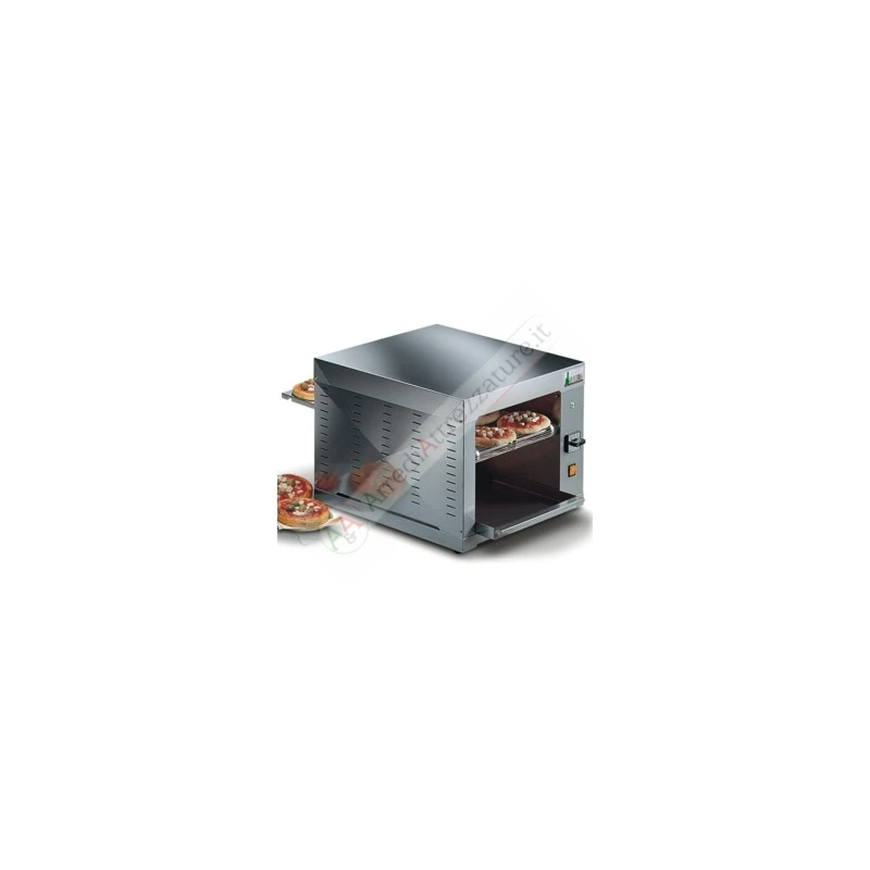 | Facili e pratici da usare sono adatti per tostare e riscaldare crostini, pizzette, brioche e stuzzichini vari. – Costruiti interamente in acciaio inox AISI 316 e tappeto per la tostatura in acciaio AISI 304. – Camera di cottura con isolamento termico. – Motore auto-ventilato. – Vano comandi con ventola di raffreddamento per i componenti elettrici. – Tubi al quarzo, con funzionamento modulare. – Variatore di velocità. – Scivoli di carico e scarico prodotto. – Cassetto di raccolta briciole facilmente estraibile. | |