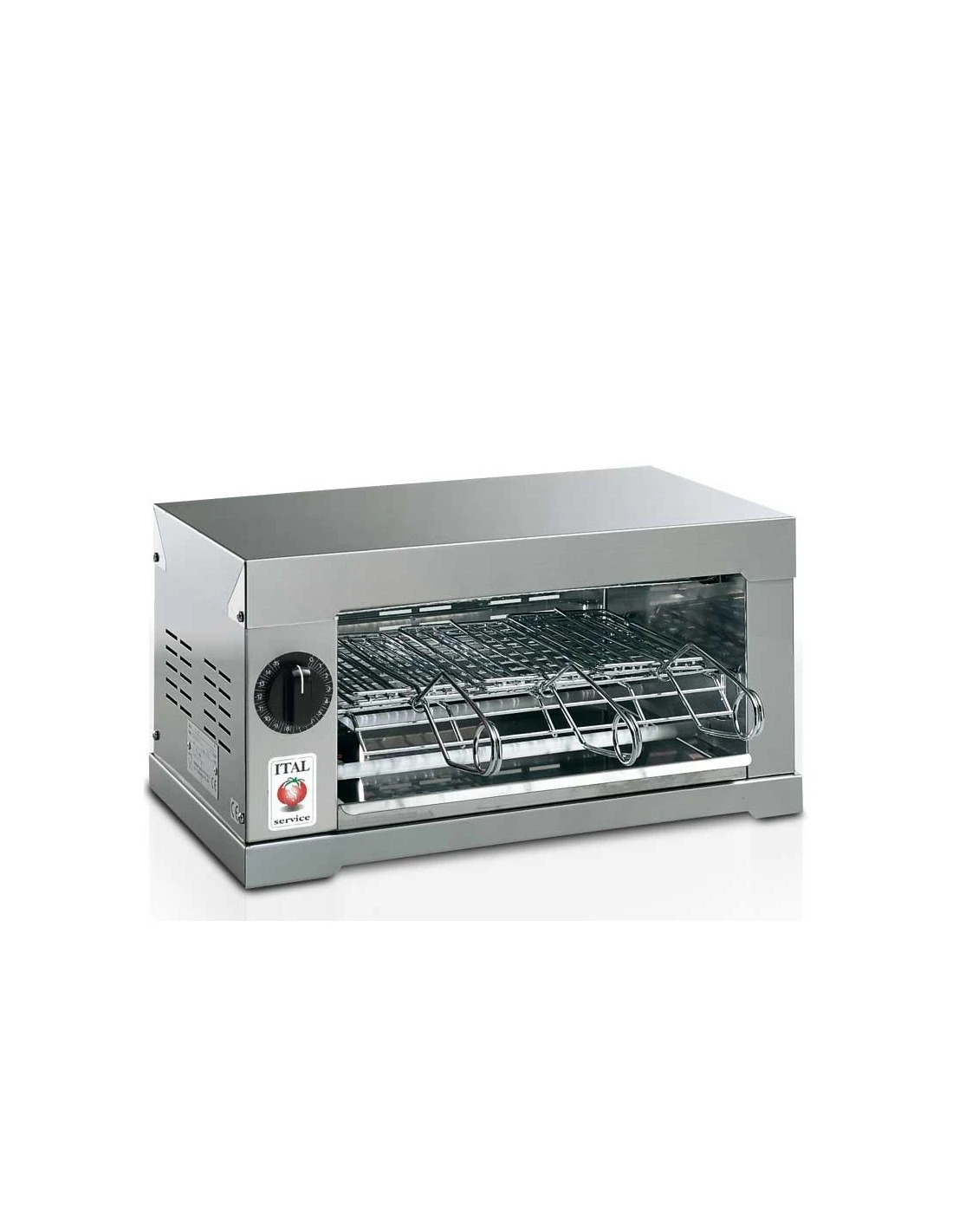 Interamente in acciaio inox 430F, facile da maneggiare e pulire Resistenze protette da tubi al quarzo. Timer da 1 a 15 minuti. Ideale per riscaldare pizze, panini e cibi precotti; cucinare hamburger, würstel, toast farciti e piadine. Disponibile con diversi assorbimenti e con tasto selettore “SEL” per l ‘esclusione delle resistenze inferiori indispensabile per preparare bruschette al formaggio.