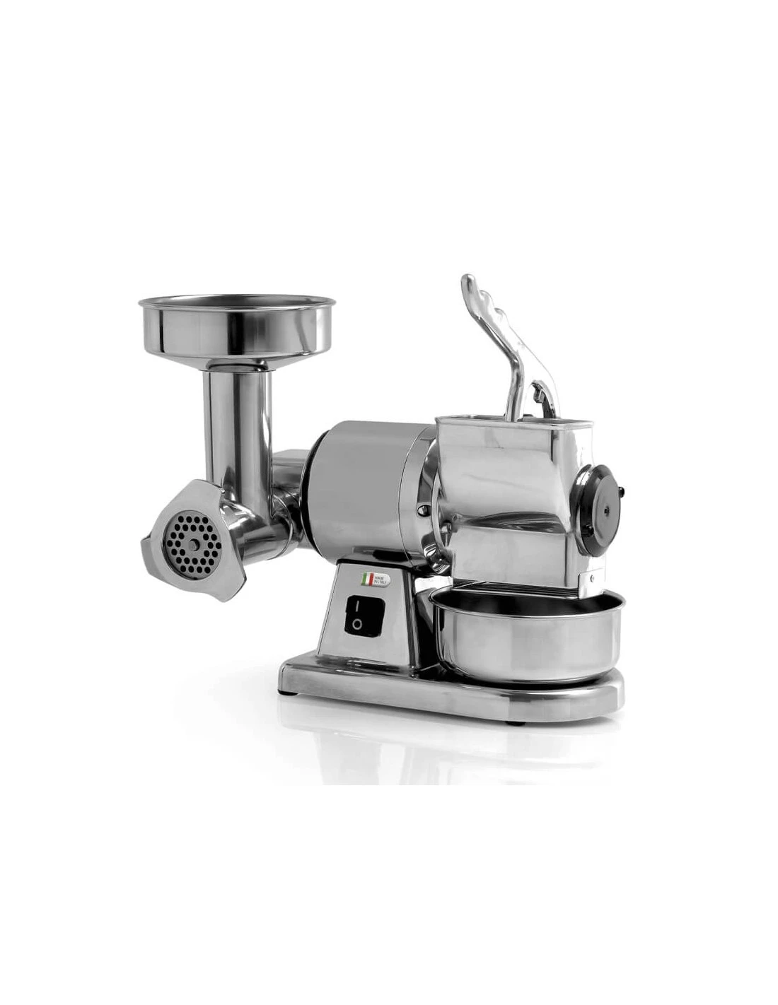 Questo straordinario macchinario è fabbricato in Italia, sinonimo di qualità artigianale e attenzione ai dettagli. È la scelta ideale per i professionisti che cercano prestazioni superiori e durata nel tempo. Scegli il Tritacarne Grattugia 8 per elevare il tuo lavoro a un livello superiore.
