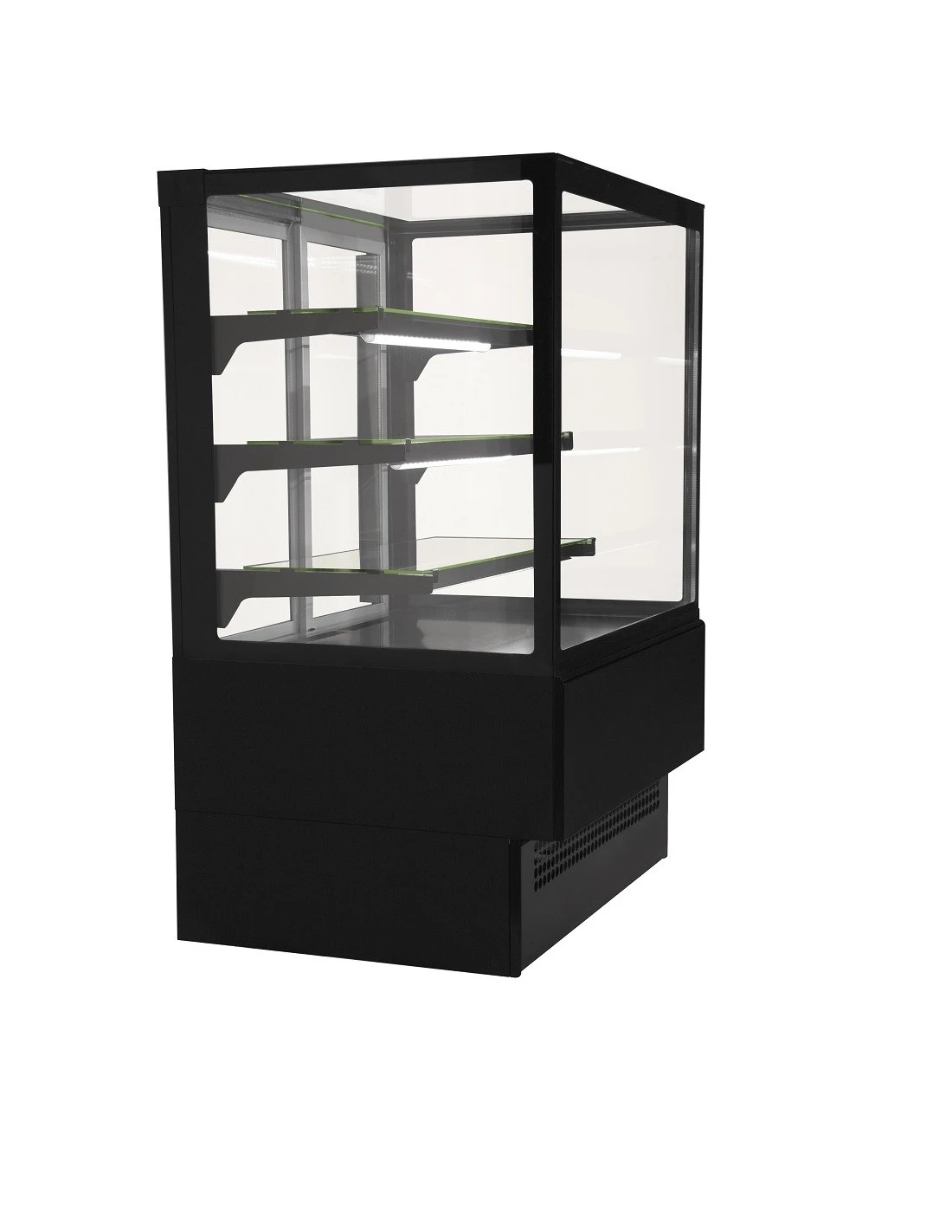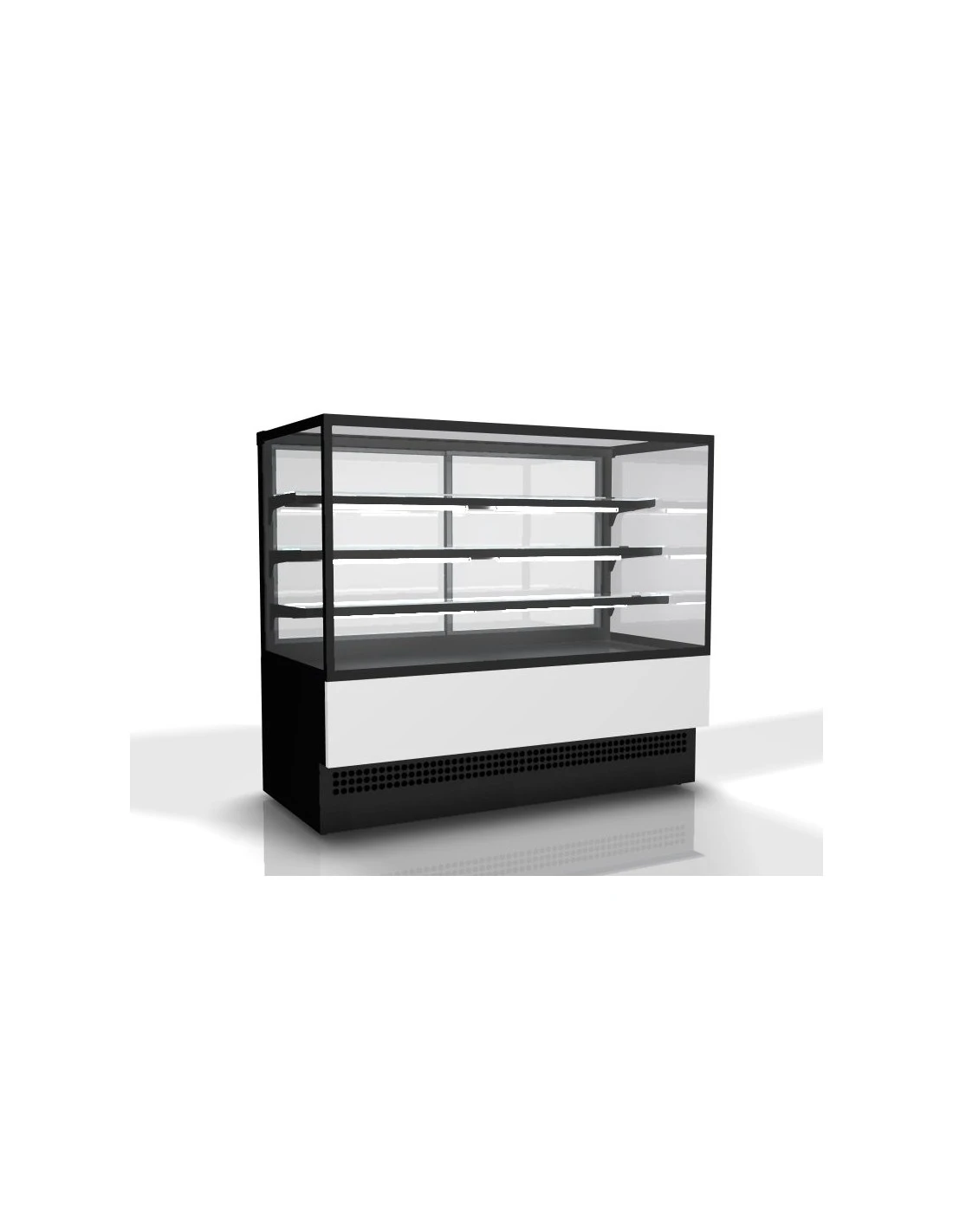 Vetrina calda con una spazio espositivo ampio di 1500 mm, caratterizzata da vetrine panoramiche in vetro su cinque lati. L’illuminazione superiore è fornita da neon, con un elegante plafoniera in vetro.