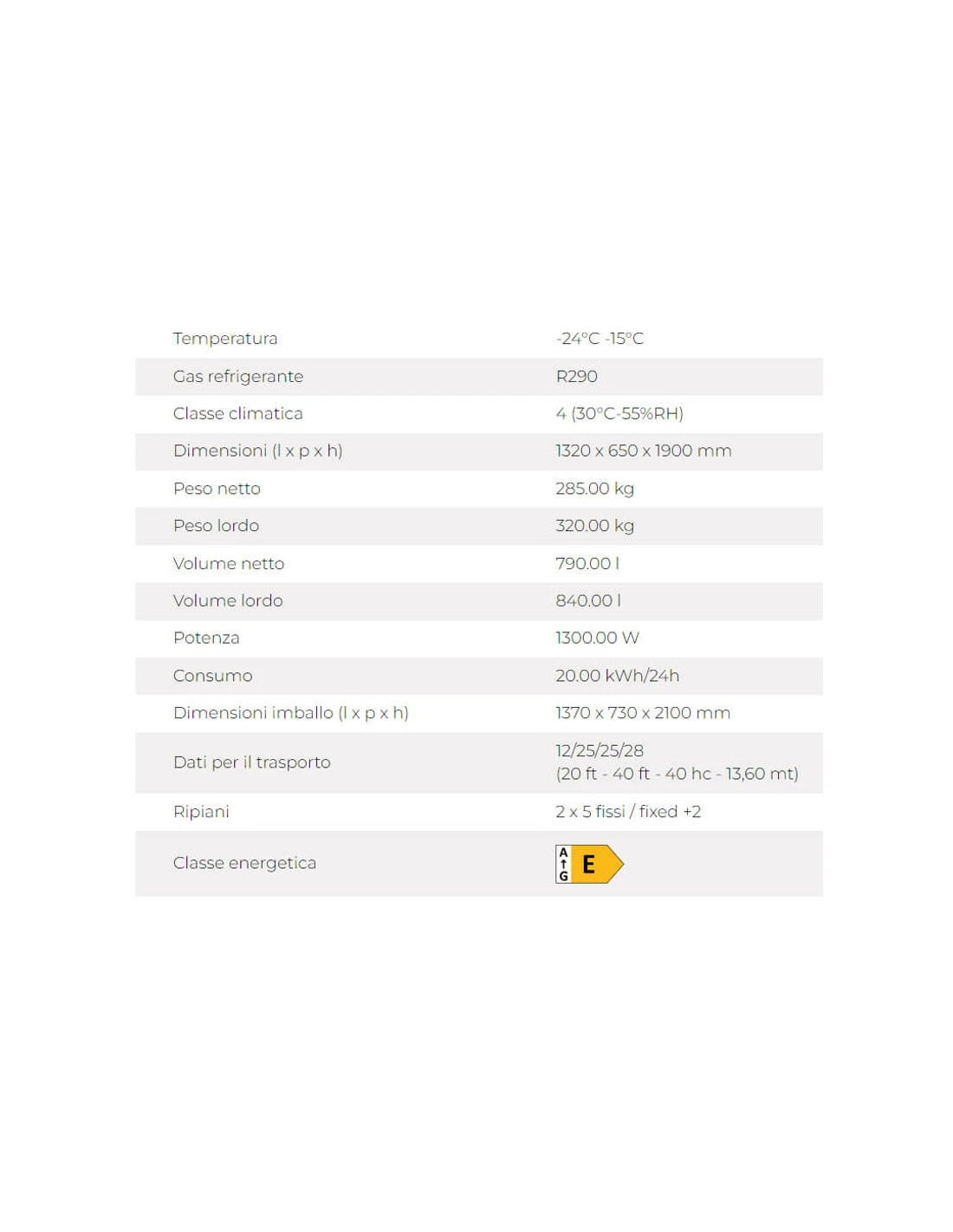 | Caratteristiche | Refrigerazione statica |