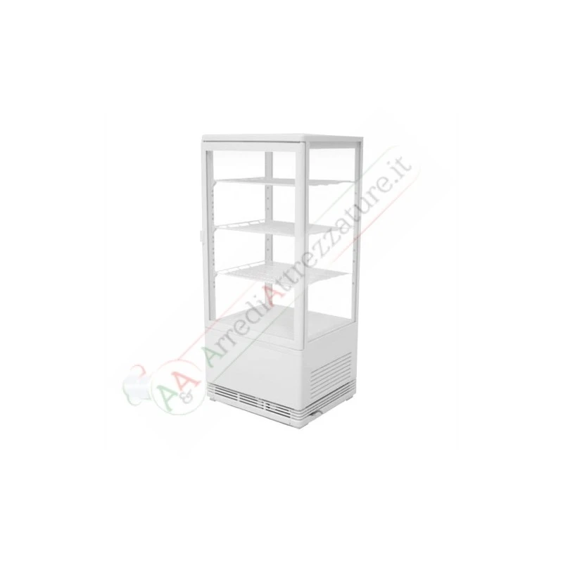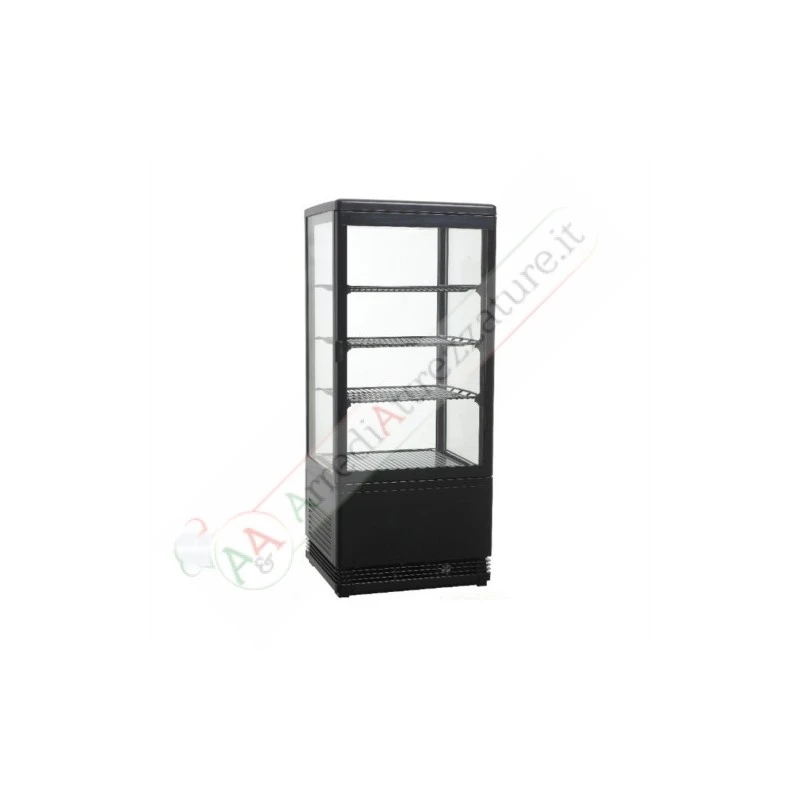 La vetrina refrigerata ha una capacità di 78 litri ed è indicata per l’utilizzo per l’esposizioni di cibi e bevande, particolarmente indicato nell’ambito delle pasticcerie, dove ha riscontrato forti successi in diversi esercizi anche in bar e ristoranti. La gamma di misure e colore permettono di unire estetica e praticità